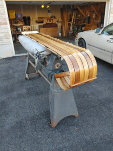 Le processus est minutieux et exige beaucoup de temps. Ross coupe le bois dans son garage non chauffé, puis le transporte au sous-sol pour les étapes suivantes pendant les périodes plus froides. Les planches sont façonnées en les chauffant dans de l’eau bouillante, puis fixées à un moule. Chaque toboggan est assemblé avec 86 vis, toutes posées à la main, avec du savon pour éviter les fissures. Viennent ensuite trois couches de teinture et trois couches de vernis, pour une pièce aussi durable que magnifique.