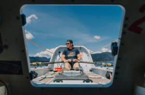 Équipé d’un bateau capable d’affronter des vagues de 30 pieds et d’un système de repérage GPS, Kyle se prépare pour le plus grand défi de sa vie.
